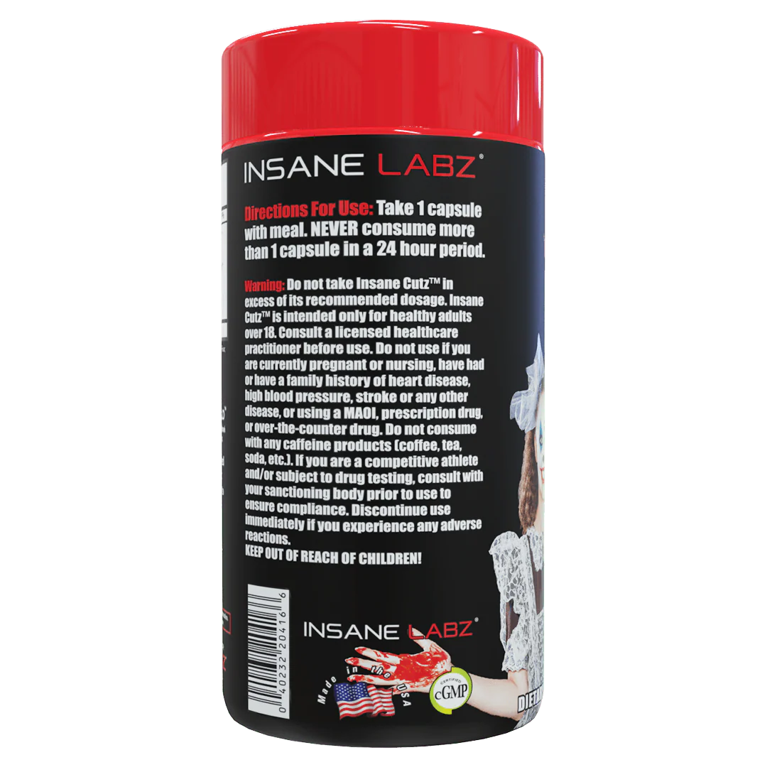 - BURN BODY FAT - Insane Cutz is a high stimulant thermogenic fat burner formulated to burn body fat while increasing your energy levels at the same time. Worried about preserving those muscle gains during the cutting phase? Don’t fret, Insane Cutz is formulated to only attack fat cells. Unlike every other run of the mill fat burner on the market, Insane Cutz is so strong you only need to take ONE serving daily.Â